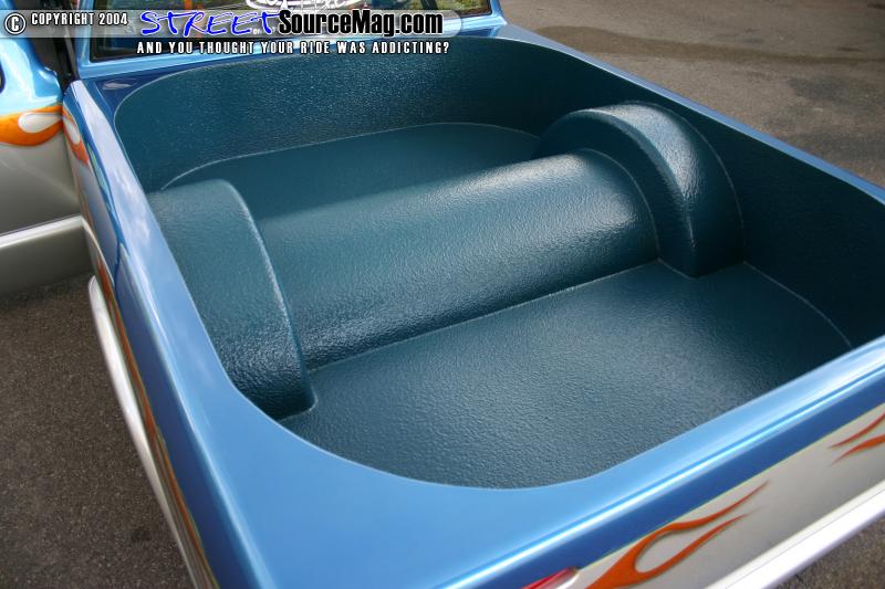 Next Ryan and Shawn brain stormed and came up with a few ideas for the exterior of his truck. First the door handles, antenna, tail lights, 3rd brake light, gas filler door, and rain gutters were all shaved off. The third brake light was replaced by a LED light bar, and the roof was fitted with s rag top.