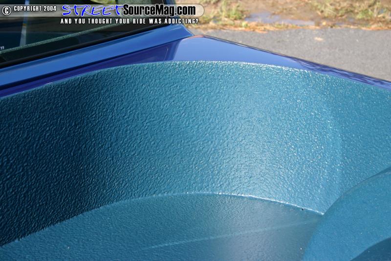 A Hagan gas filler was molded into driver side bed top. The inside of the bed was then fitted with a wheel and bridge covers, and rhino lined. The passenger side door was then suicided and the truck was then on to paint.