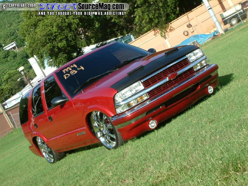 Moving into the interior of Justin’s Blazer, he would begin with adding some paint to the dashboard along with the custom fiberglassed speaker pods on the door panels. Next the stock steering wheel would be replaced with an aftermarket carbon fiber one along with the rearview mirror being swapped out with a lighted custom mirror.