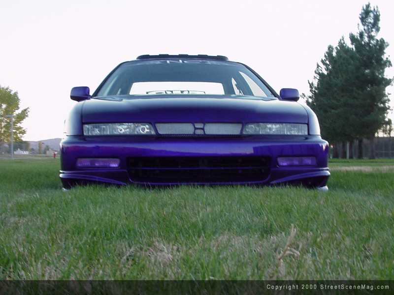 Starting to work his way back to the rear, the door handles and moldings were shaved, and the squirters were relocated. Most people are happy with a sunroof, or just able to roll down their window. Well once again Joe had to go a different route with installing a power sliding rag. Finally to the rear, the first thing to go would be the stock license-plate box, which was shaved. Joe then took rear bumpers from a '94 and '96 Accord and proceeded to graph them together to form his very own bumper.