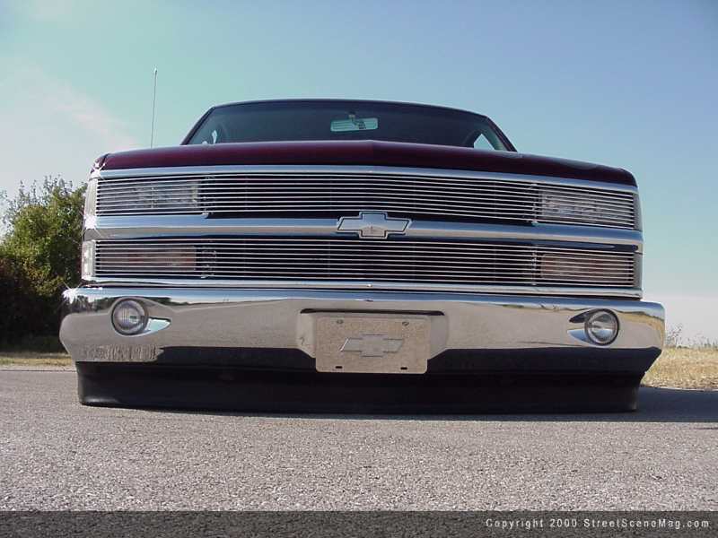 After getting the Chevy to an appropriate ride height, it was now a must to grab the attention of anyone while driving down the road. David decided to take the truck to Merlin’s of Enid, in Enid OK for some fast body modifications. The installation of a Trenz grille was one of many ways David attracted attention whether it be on the road or at a show. Along with the grille, PIAA headlights where installed up front and complemented with a very distinctive bumper.