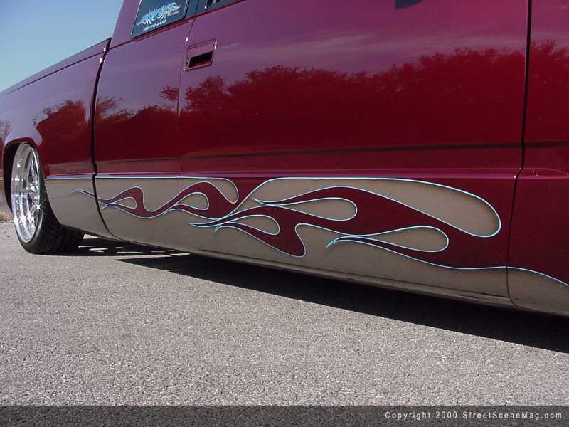 The paint, which would end up being sprayed, would be a Dark Metallic Garnet with some light pewter flames.  Since this ride was no longer just a tow rig, why not touch up the interior? Well that was what David must have been thinking as well. With help from friend Tony Rhodes, they managed to redo the interior just 2 weeks before it was time to head out to West Coast Nationals. What was done you ask? Be patient and I’ll get to that.