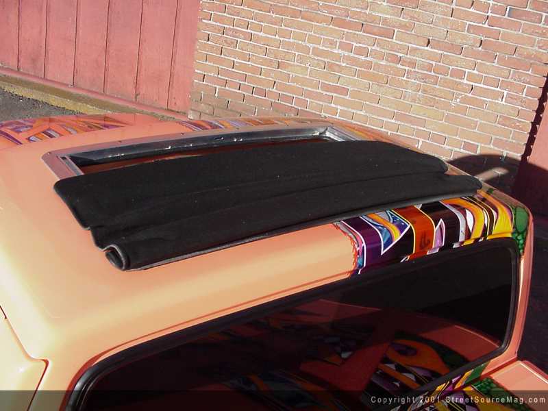 Moving his way back, the cowl would be smoothed out, the doors shaved and the rain gutters filled and smoothed. A Street Beat ragtop would be installed into the roof allowing the sun to shine through. The Mazda would also be removed of all emblems for a much cleaner appearance.