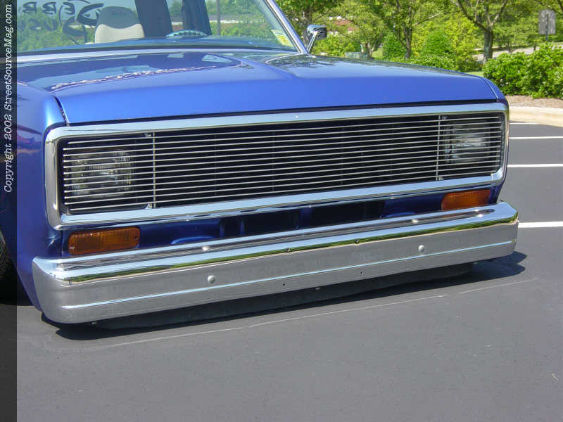 The only way to remove the bed if needed is to climb underneath to get to the bolts on the custom bed mounts. The gas door was also shaved and the filler neck was relocated to the top of the bed and put under a teardrop shaped pop up gas door. Once all the bodywork was done, it was time for Chad to spray the 2001 Civic SI blue paint with pearl on his Ford. When the paint was dry enough, Chad bolted on a pair of custom flamed billet mirrors.