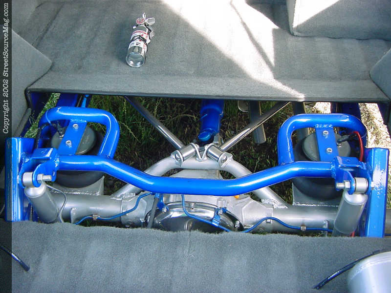 Out back a TCI chrome 4-link was installed along with a set of 2600lb firestone airbags to bring the back down as low as the front. With the frame rails touching mother earth it was time to whip the exterior into shape.