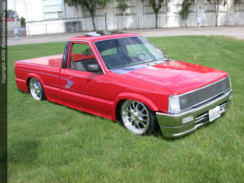 Loving the low stance like the first Minitruck he'd ever scene, Brian would first turn his attention to the suspension. First the frame would be notched 3 inches allowing the axle to move into the frame rails at lower levels along with the installation of a set of Chassis Tech ladder bars. The front would be removed of the torsion bars and a set of AIM lowering spindles would be installed to help bring the front level with the rear. This would set up things for Firestone 2500 lbs bag set up at each corner for adjustability.