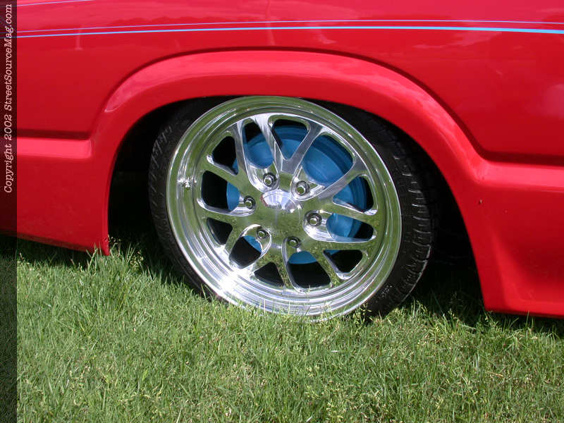 With Brian's new found low, the fenders at all 4 corners would surround his 18-inch Budnik Grid six's wrapped in 235/40 inch Pirelli rubber. With things moving at a livable pace, it was time for Brian to work his knowledge to the exterior. Starting up front for the mean look, a full polished phantom grille would be bolted up along with having shaved the emblems off of the front fenders.