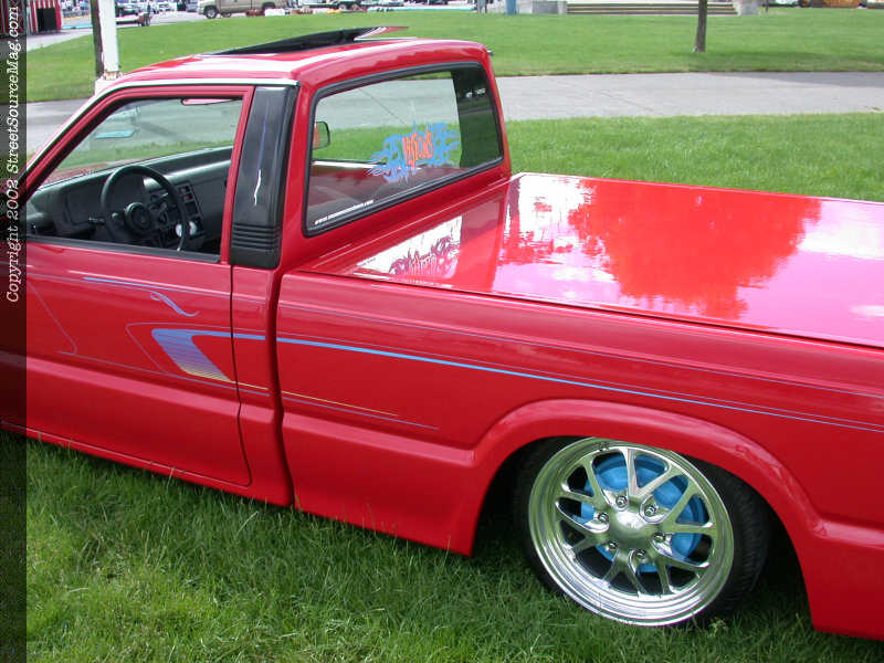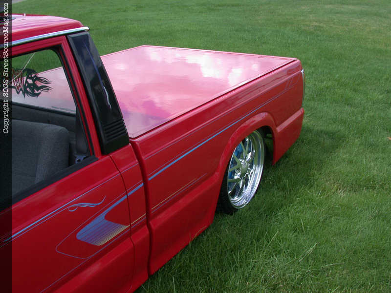 Next Brian would bolt up a Toyota 4x4 front bumper to keep things at a change. Moving to the rear the door handles and gas filler door would be shaved along with the tailgate handle and tailgate.   Finishing up the rear, a roll pan would be molded in. Not yet complete, Brian would install a custom sunroof to allow the sun to shine through. Jason Haase and Tom Jacobs are responsible for the body modifications.