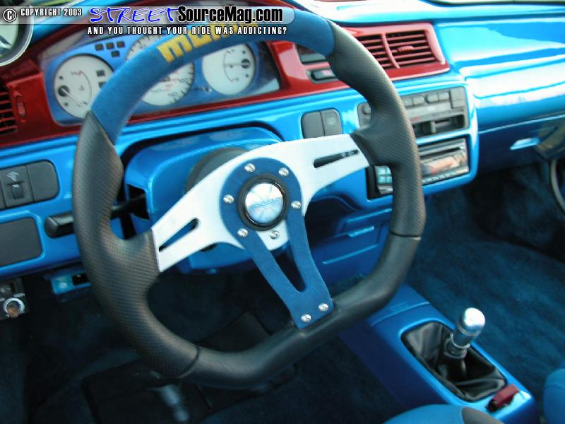 He then added a Momo steering wheel and Auto Meter gauges to bring his dream into reality. Of course, no interior is complete without a stereo system. He also added an Alpine CD player with Pioneer mids and tweets, Rockford Fosgate subs, and Memphis D1000 amps. Don't forget the Farad Lighting Audio power cap and you can say it's enough to feel some good vibrations.