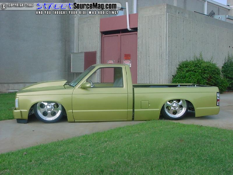 To get started with the build up of the truck Rusty knew he had to bring this future eye catcher close to the ground, up front Rusty yanked the front coil springs, shock and spindle and mounted up a 2" drop spindle, firestone airbag and a set of drop shocks. Out in the rear of the truck Rusty took it upon himself to junk the factory leaf spring and mount up a 3-link/panhard setup in their place.