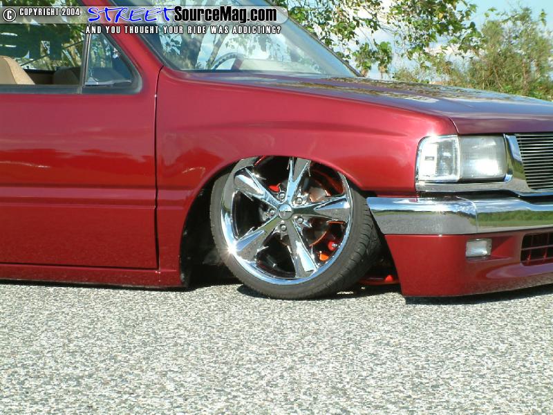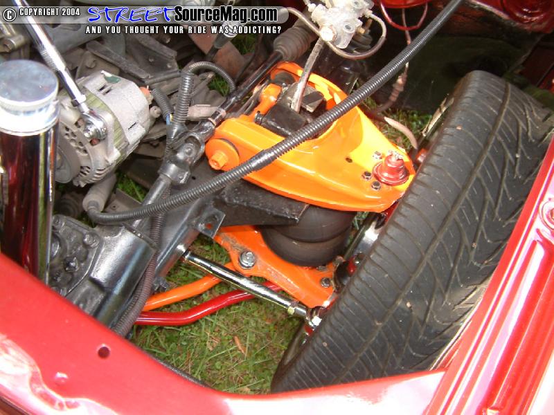 Next they would install a TCI 3 link in the rear allowing the leaf spring set up to be ditched to the side. With the rear ready to bag it was time to tear into the front. Starting with the hub assembly Chris would have them convert over to a DJM Toyota drop spindle along with Toyota hub and brake. Next the upper and lower arms would be re-drilled to accommodate the new Toyota products. Next a set of Firestone 2500’s would be installed upfront while 2800’s take place in the rear.  Toxic shocks would then be installed at all corners to help with the ride. ½ inch line would be run through the system and the air is pushed to the bags through Extreme valves. Having the suspension and frame work complete would be vital to the 3-inch body drop applied to the Pup. But before writing it off complete it would be time to work the exterior body.