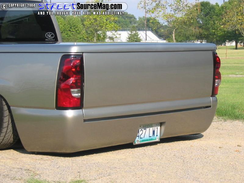 Next trailer fenders where be installed and the bed was rhino lined. Kustomwerks would also bring the bodywork to the next level including the welded in Sir Michaels steel role pan and tailgate handle flip, and shaved door handles. Joe Benne would lay down the Pewter paint. Some street scene mirrors where added. And a snug tonneu top would be installed to cover his bed from the elements. To keep his radio in tune a Billet Specialties antenna was threaded in.