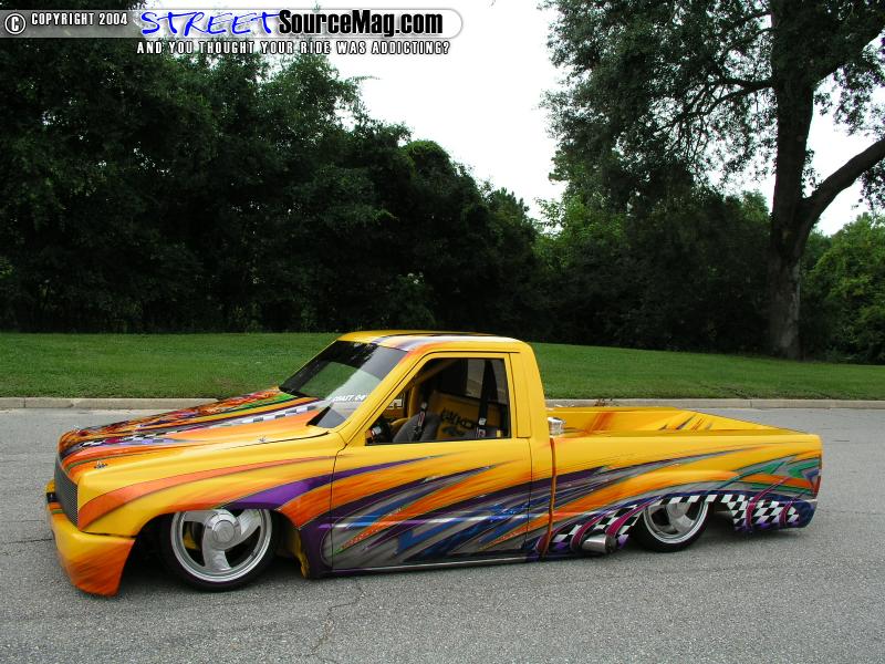 Dion Giuliano of Kal Koncepts was the original owner of this 1986 Toyota truck that started life as a beat to hell shop truck that was simple ready for the crusher. After being salvaged from a butcher shop that unsuccessfully tried a bodydrop, Dion Giuliano brought in Shaun Carlson to finish the drop, and set up the airbags. The airbag system in this mini was the first one shown in a step-by-step in Mini-truckin magazine back in 1995.