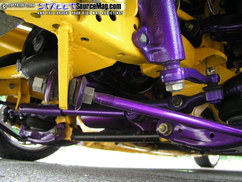 The engine cage extends throughout the firewall, and joins the frame. Notice the handmade brackets that replace the need for a core support. The front end was to look like a race ready spec truck. This truck was built when the first Nastrucks were appearing at exhibitions, they wanted the mini to look the same way. Notice the carbon fiber valance below the window.