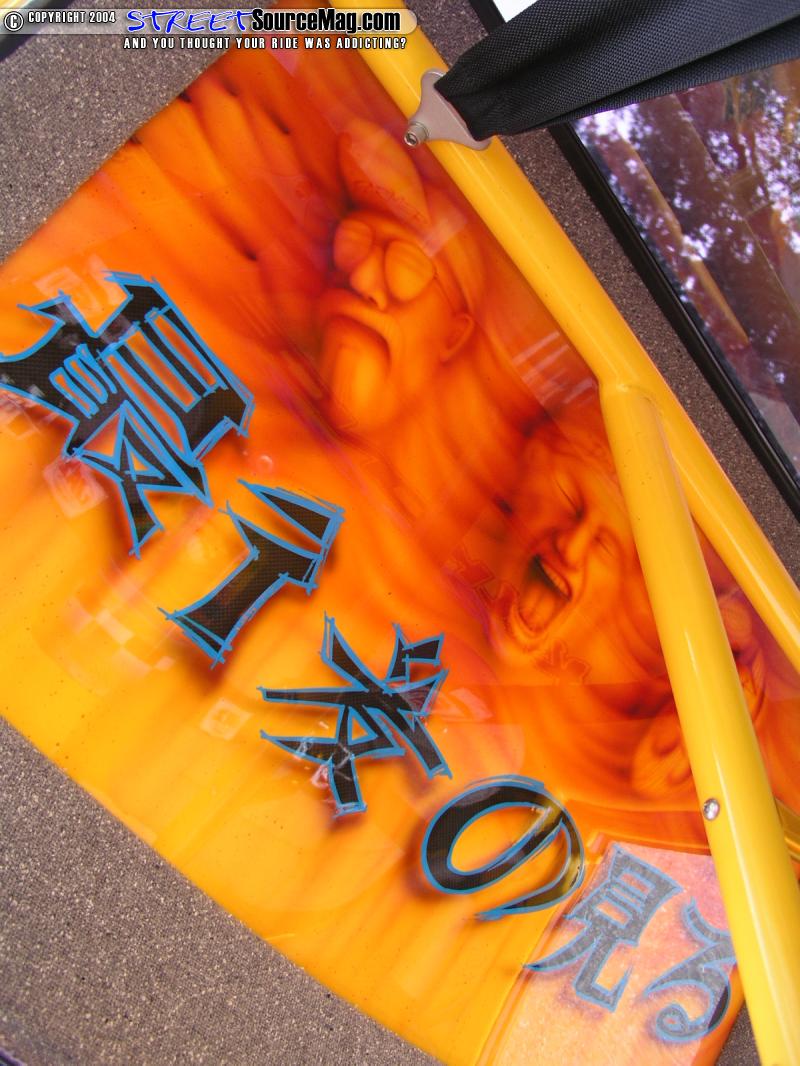The words on the back cab wall are not painted, that is the underlying carbon fiber that was masked off when the interior was painted yellow. The yellow hid the seams of the carbon fiber, and reinforced areas. They only let the carbon fiber be exposed in the areas that would look the best. Plus it lets people know how much CF there was in this build. Approx. 12 Linear yards.
