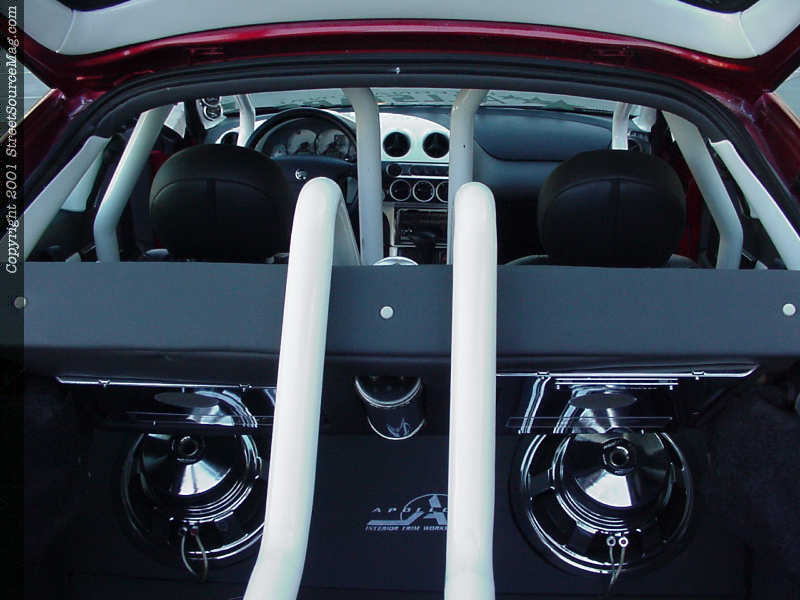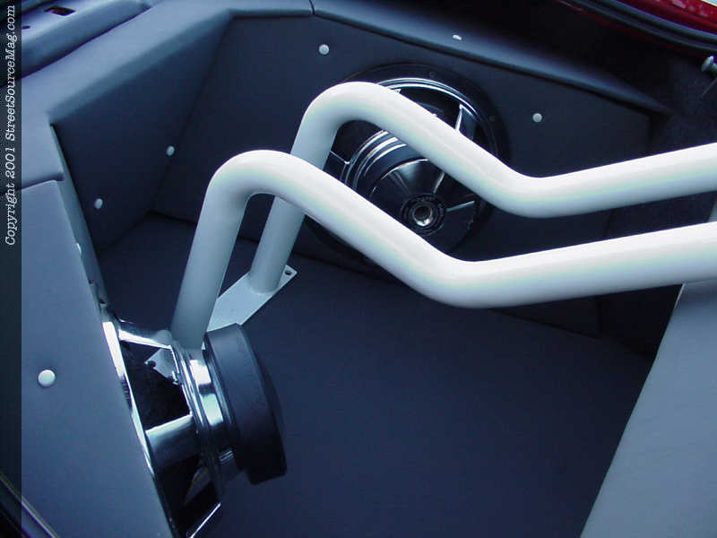 The roll cage painted white, gives the Cougar a custom look with it's 2 ΒΌ-inch tube running throughout the cockpit.