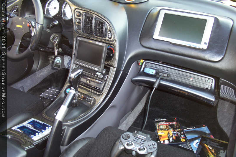 But what interior would be complete without the tunes? In Gary's case it was a mobile theater. He started with an Alpine 1005 head unit with a 6.5 display screen next came the Alpine DVD-5200, Alpine PXA-H510 digital audio surround processor. Feeling that wasn't enough, he added a Pioneer AVDW8000 monitor flushed into the dash were the passenger airbag once resided.