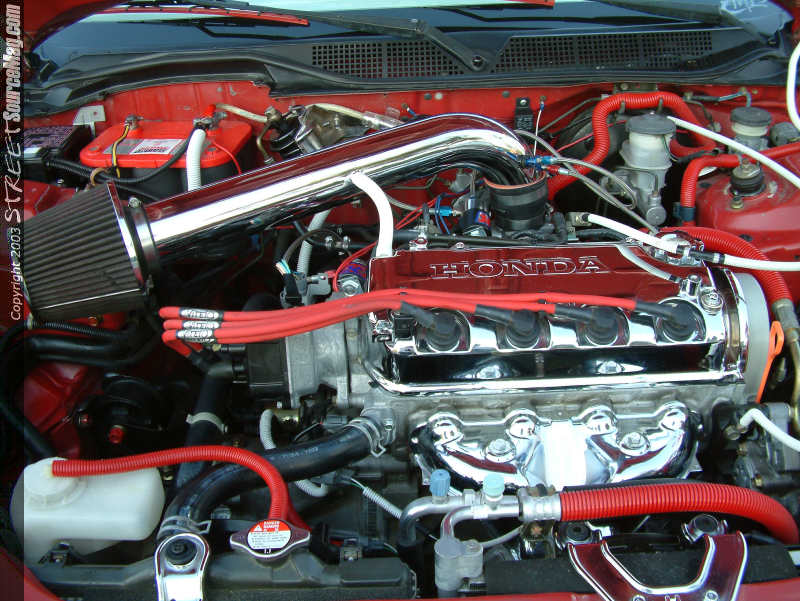 With the exterior and interior complete this would leave the engine needing some of that much needed attention to make this Hatchback an all-around show ride. Beginning with the looks, Ellis would have the valve cover chrome plated along with the heat shield and random brackets. Next Ellis would pull all the hoses and cover them with an array of red and white silicone hoses.
