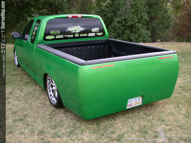 Next to last the roll pan would be welded in and the bed would be covered with a Line-X bed-liner. CJ performed the bodywork duties himself while with the help from David of Phoenix they would lay down the Lime Time Green House of Kolor paint.