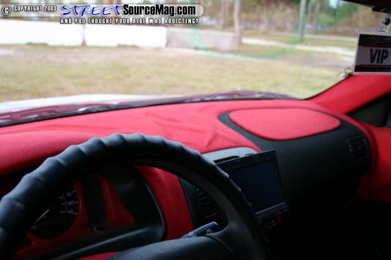 In dash you will find an Alpine CVA 1004 along with TV. TV monitors would then be installed into the headrests of both front seats. A 4-channel EQ would be installed into the system to control the sound quality while a set of Alpine 5 ½'s would be installed for mids. 12 inch Sony Explode subs would be installed for bass while an Alpine 600 amplifier pushed volume through out. Jonathan handled the wiring needs himself.