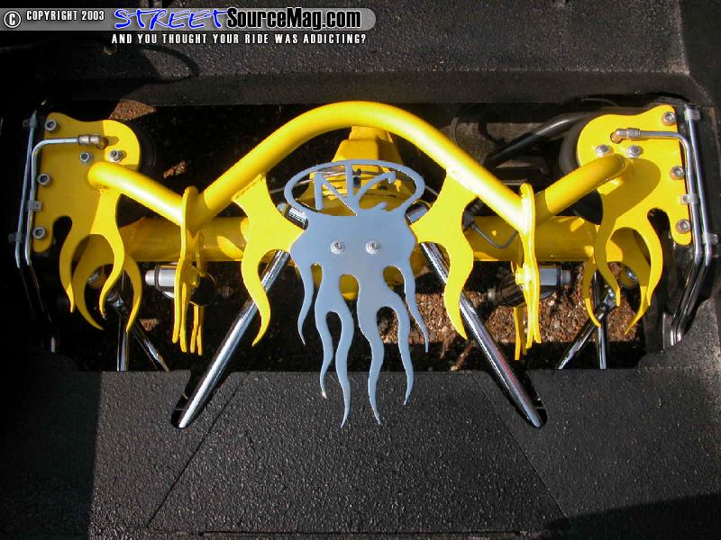 Daniel started right away with upgrading the looks of the chassis by chroming the 4 link, the front and rear shocks, the rear brakes, the new control arms and bringing it all down on bags.