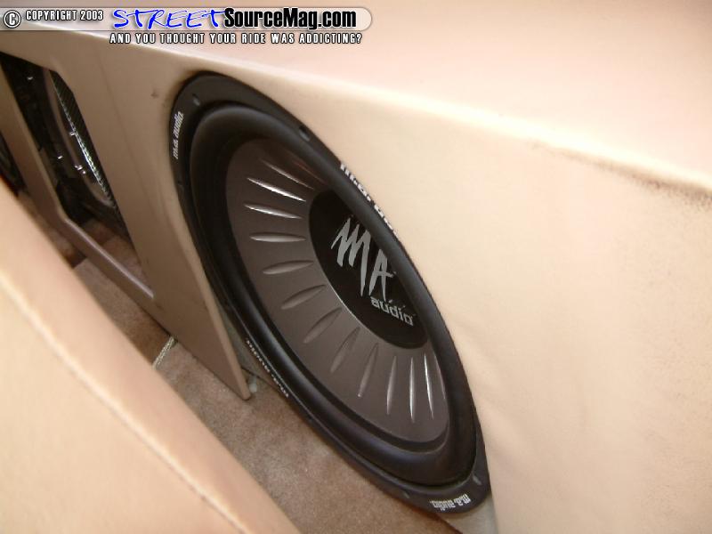 A Sony Xplode CD player would be the deck of choice to push the music through out the system. Next Chas would have a 4 MA Audio 6 1/2s and 4 1's installed for mids and highs while a set of MA Audio 12's were mounted up for the bass. 2 MA Audio amplifiers would finish off the system for Chas's liking. Joseph's Electronics of Mesquite, TX is responsible for the wiring needs.