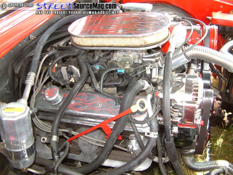 With one item untouched, Chas needed to dig into the stock 305 and give it some good eye candy. Chas would find the 305 already equipped with an upgraded crankshaft and new rods. The water pump would be powder coated along with having the alternator and engine pulley's chrome plated. An electric cooling fan would be installed to help cool things down. With a leaking exhaust, Chas would make sure his Flowmaster muffler would still keep his 305 sounding mean.