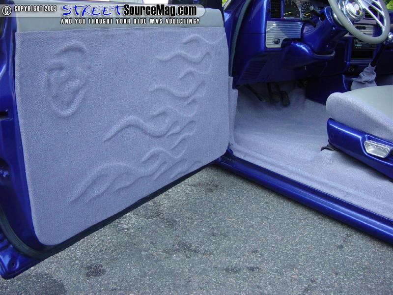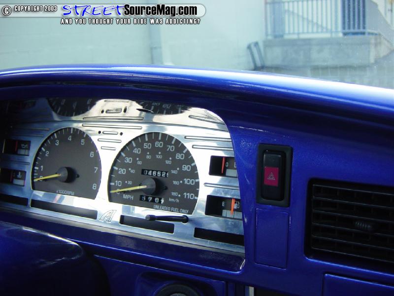 A custom center console was built to house the air switches, gauge and the power window controls. The console and dash were sanded and smoothed before paint to match the exterior was sprayed. Several billet pieces were also added to the dash and matched the Boyd billet steering wheel.