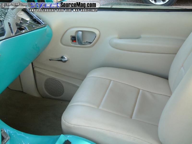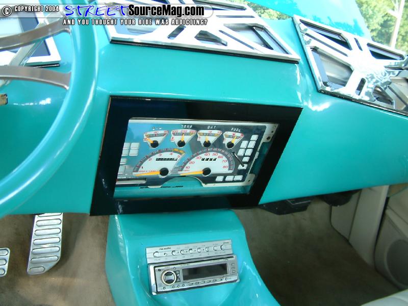 ____________________________________Mitch would turn to Matt Sturgill at Kustom Kars and Audio for the final show stopping, double take interior. For starters Matt would custom fit a ’49 Ford dash and then create a handmade set of door panels to match. The pieces would then be painted by Robert Hamilton of www.waykoolart.com.