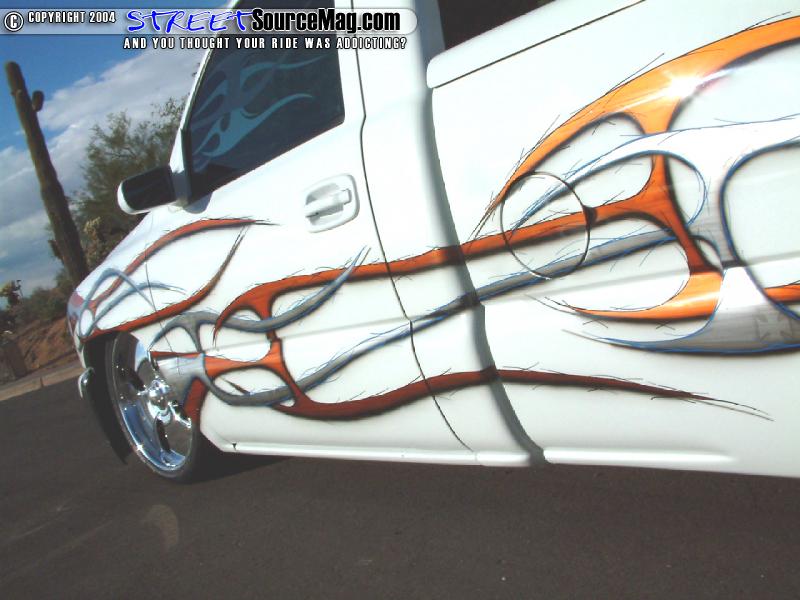 Tahoe door handles would then be found in the place of the stock handles while Yukon clears would take the place of the stock headlights, while ’03 Chevy taillight are found out back. John Owens of Phoenix would handle the bodywork and modifications while Mark would leave the paint work to Troy Buck of Monster Paint F/X.