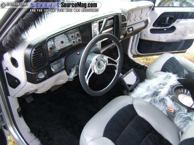 Yet to make the truck lay all the way around, some interior modifications needed to be made. Dan started by making some rear wheel tubs and raised the rear floor. Up front, the Hoe needed to have a set of front tubs fabricated up as well. With those things done, the Hoe had its dash wrapped in gray tweed with stars throughout and painted the trim pieces in flat black.