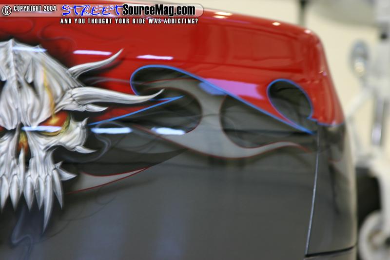 Almost penniless Adam put all of his trust into them, and soon decided that he would look into airbrushing. Before the paint was sprayed Adam also had another task for them. Adam decided he wanted to keep the OEM look of the car by sticking with the stock bumpers and up front shaving the turn signals and tag holes, and in the rear shaving the side markers.