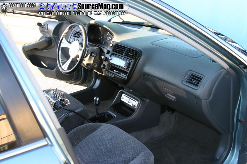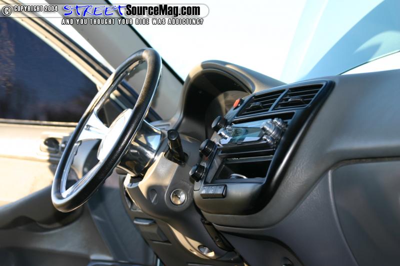 Inside the Civic Neil installed a Billet Specialties steering wheel, Billet Direct rear view mirror, billet short throw shifter, billet shift knob, and Aim digital gauges.