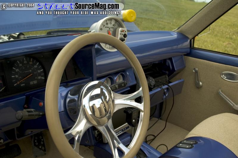 Custom kick panel’s would be set in place while the doors house billet door handles, armrest and window cranks. The panels not painted would then be wrapped in tan tweed to match the wrapped seats. Also found within the interior confines would be a set of Lanzar 6.5 mids and two 10” Power Acoustik subs all ran by a 1600w amplifier.