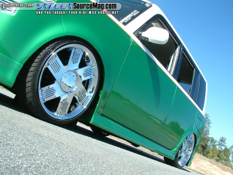 After purchasing the Scion back in Dec of ’04 it would be driven for about 7 miles before being bagged. To handle this feat Mike would install a set of McPherson struts upfront along with a set of Contitech 2500lb bags in the rear.