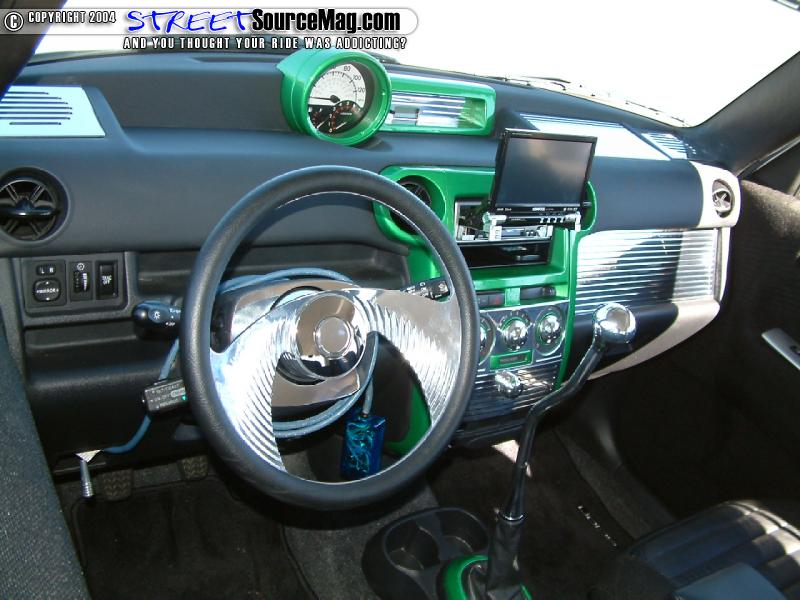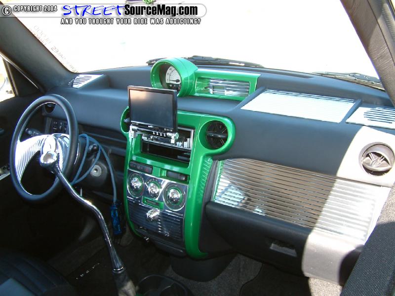 Now working his way into the roomy Scion Mike would make sure to leave no panel untouched. Starting with the dash Mike would have it painted along with housing a few billet items while the doors would receive the same painted treatment accompanied by a few tweeded areas. Other panels would be wrapped in either leather or tweed to help tie in the newly wrapped seats.