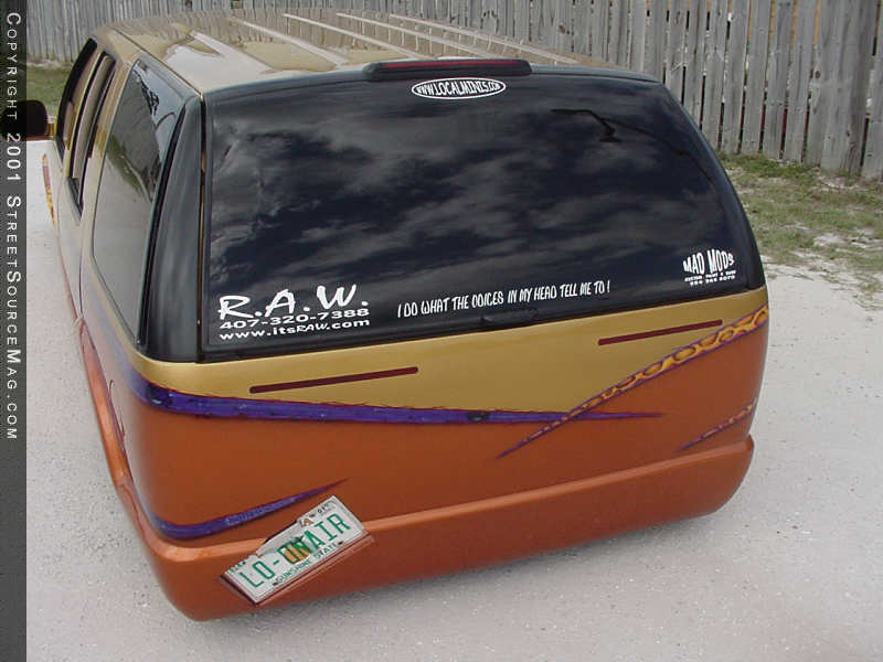 Next, Tom came up with a few ideas to set the exterior of his Blazer off from the rest. To get his ideas moving, Tom contacted Mad Mods in Hollywood, Florida. In their hands, Tom's Blazer was first shaved of all unnecessary items including the roof rack, door handles, antenna and taillights. Mad Mads then welded the rear of Tom's Blazer closed and installed High Tech LED's in the place of the taillights. In the rear of Tom's Blazer, Mad Mods also went to work installing the rear quarter panels from an S10 pickup truck.