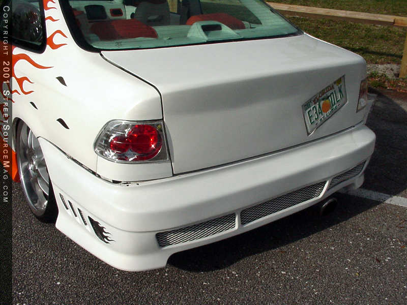 Next, the inner taillights were shaved, the tag box removed then relocated to the trunk, where the tag was frenched and canted into the one-off suicide trunk. The keyhole was frenched for added points as well. The gas door was also shaved and the filler neck moved behind the rear Altezza-style taillights, giving Nathan's Civic even more of a custom appeal.