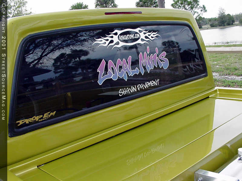 AON shaved the gas filler door, rerouted the filler next and installed a Hagen gas door to the sheet metal bed as well. Another nice body mod AON performed was the installation of a flush mount LED third brake light, which can be found on the back of the cab. Up front, the Isuzu received a few custom touches including a chrome Isuzu bumper and valance from a '97 Rodeo, Rodeo headlights, Trendz billet grille insert and chrome grille shell and '97 Rodeo side-view mirrors.