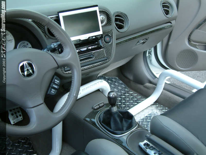 The material used would be a tan and black leather material. Next, a Benevento carbon fiber kit would be installed onto the dash, door panels and center console. While looking around you will also notice the Ichibahn Motorsports rearview mirror taking the place of the stock one.