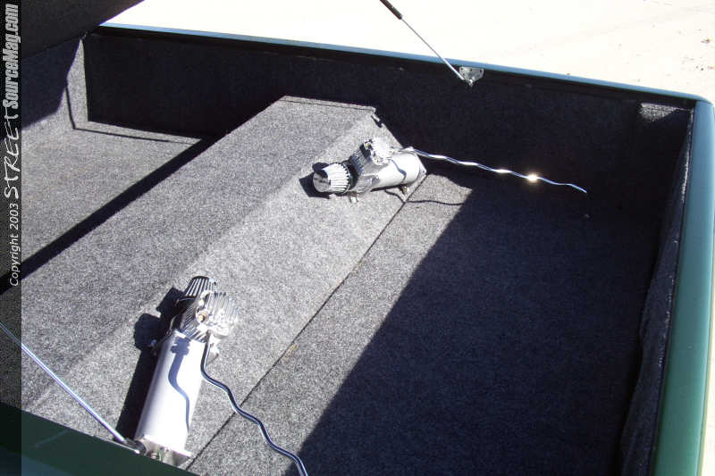 So now we are up to date on the history of the dime, and we all know no good story would be finished without telling you "The Rest of the Story" so here we go. Now that Damion had acquired the truck from Troy he saw a lot of personal touches the wanted added to the truck. I mean think about it no good respectable mini trucker could leave a truck untouched of his own personal appeal. So with that in mind Damion rallied up his friends and fellow club brethren to finish off the perfect mini. Damion decided to plumb the entire air system over again using all stainless steel lines to ensure reliability. He added two Viar 450 compressors with the lines leaving the compressors in a tribal design and heading thru the bed into two ten-gallon storage tanks supported under the bed of the truck. To get air to the bags eight Parker Skinner 3/8" gold valves were then added to the system.