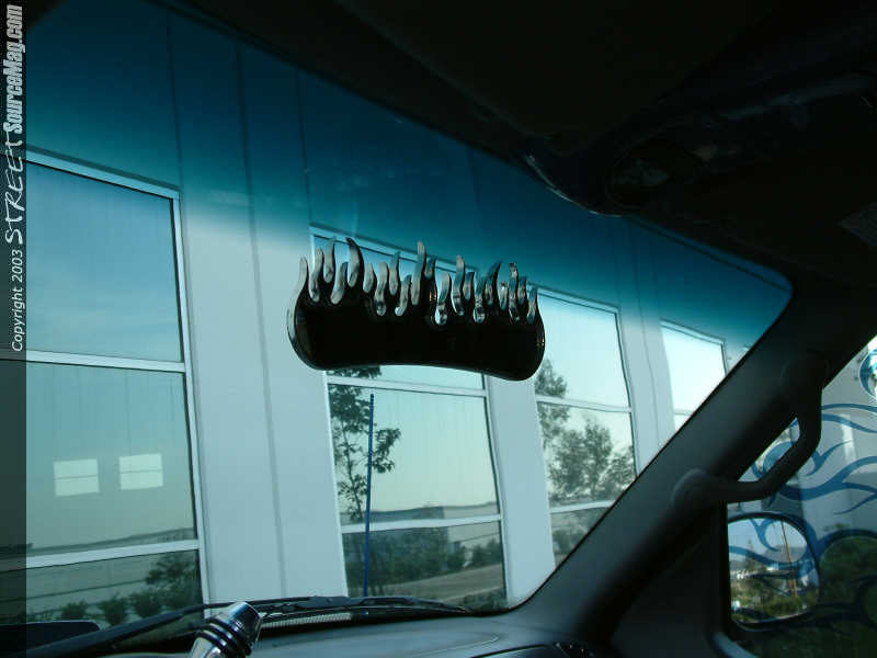 A set of NU-Image platinum gauges would replace the stock set while a Trenz flamed rearview mirror and flamed pedals would also be mounted up. Silver carbon fiber insert material can be found through out, along with the seats, which are found in stock leather but with custom center silver carbon fiber material in the centers. Finishing things off with a nice touch would be a set of Vitek diamond plate floor mats.