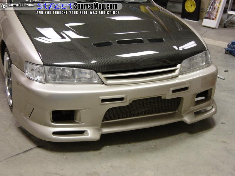 Next remove the Phillips head on top of each of the corner lights and pull it forward to release the pressure clips on the back of the lights. Now remove the Phillips head screws that are between the headlights. (This is where the stock bumper will vary from these pics. This car had 3 screws holding the center on.)