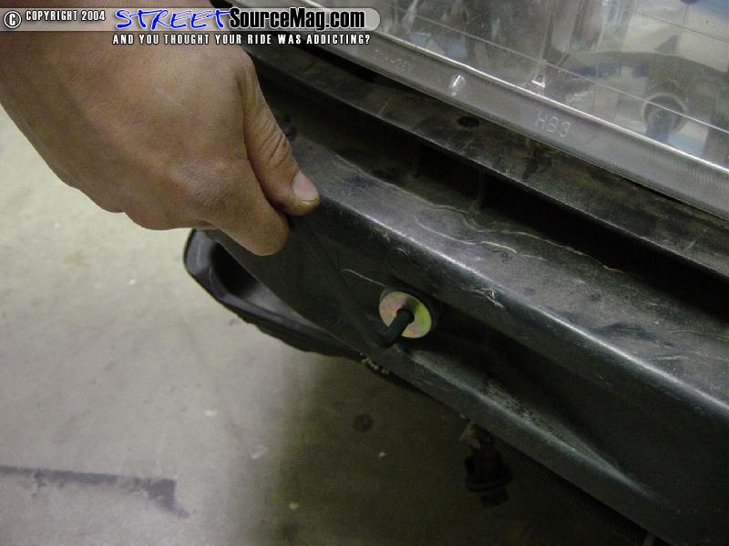 Once the front crush panel is removed, you can simply unplug all the bulbs and pull the factory headlight forward to remove it. This leaves plenty of room for the new light to be installed. This is the comparison of the stock 2-piece set up and the new one-piece set up. Notice how the stock headlight will turn dull after a few years of use; the new lights will also clean up the front end as well. Now that you have removed everything and have both lights out, it is time to reverse all the previous steps and install the new lights. With these particular lights, you will only have 4 bolts to reinstall each light instead of 5. The new lights will simply need to be pushed in with the guide pins where the corner lights used to be and re-bolted. Here is what the final look will be. Something as simple and cheap as changing out your headlights can make all the difference in the world.