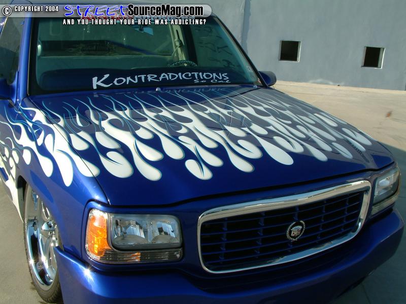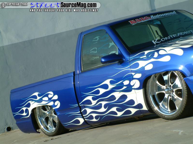 With the bodywork complete it was time to block and prep the Chevy for the paint to be applied. The paint of choice would be House of Kolor magic blue base with white flames and blue, ice pearl through out. Starbucks Customs would be responsible for all of the paint and bodywork done.