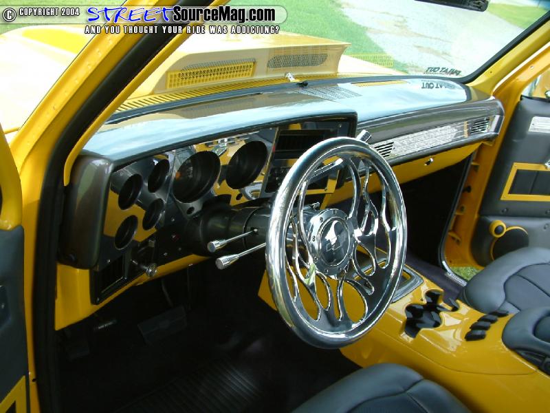 Roy's Custom Upholstery of Houma, LA would apply this work. To bring the interior together with the exterior look, the panels that weren't touched received a nice coat of paint. For a center console Kevin would slick down and paint one out of a '99 Cadillac and install it to perfection.