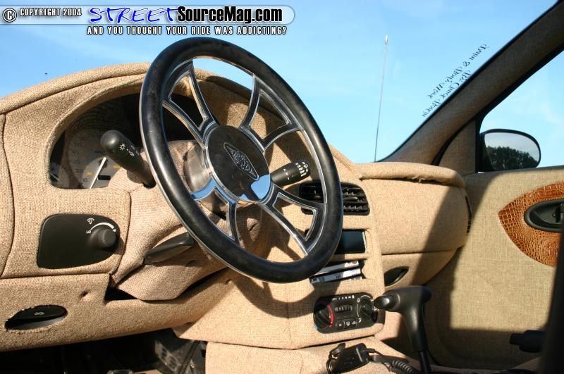 Moving on to his interior Cody had Mike Hicks at Dixie Rod and Customs tweed almost basically the whole interior. The door panels where covered in oak tweed along with gator skink inserts. Most of the other panels in the Saturn were also covered with oak tweed including the dash.