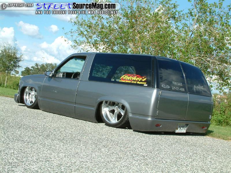 The crew at Fletchers would then custom modify the stock control arms ensuring clearance all around. Ensuring enough room under the beast, a 20-gallon aluminum gas tank would take the place of the stock bulky tank adding more room for low. A set of Monroe shocks and Slam Specialties RS72 bags would then be placed at all 4 corners for adjustability. For a cleaner look stainless brake lines would then be ran through out.