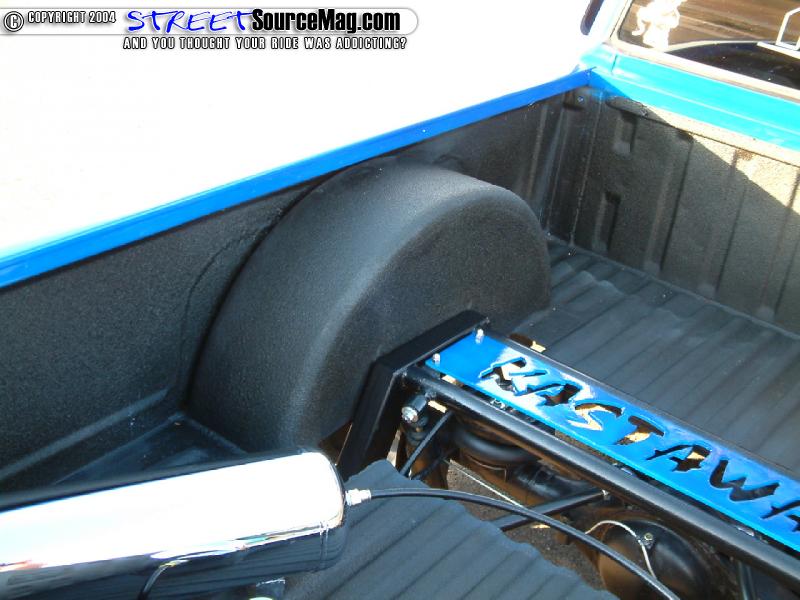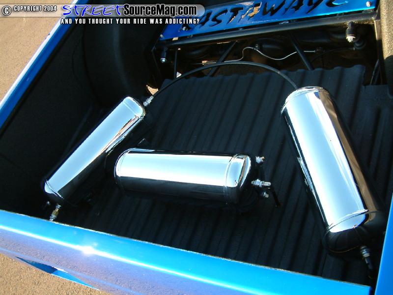 Three 3-gallon chrome air tanks would then be installed into the set up along with a DC5000 compressor and Parker ½” valves to finish off the air set up. Not having a good set of wheels available for a 6 lug truck, Jerry would decide to convert to a Toyota 5 lug conversion so he could bolt up his 18x8 Alba banks wheels wrapped in 215/35 rubber.