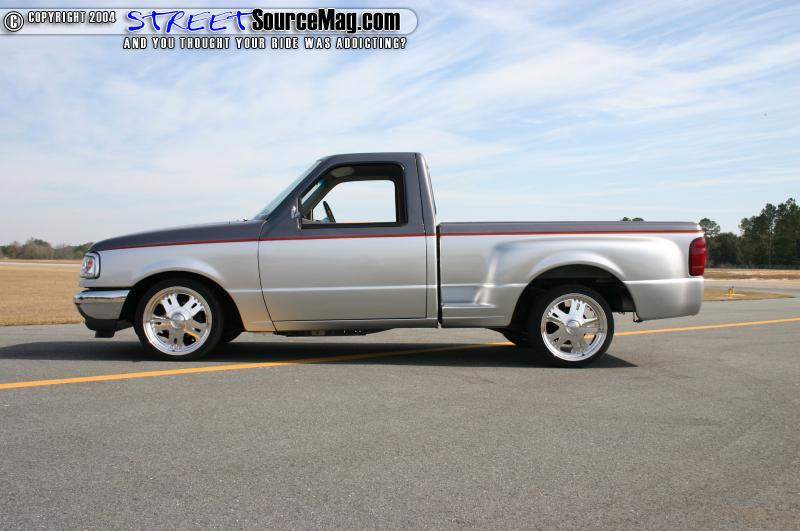 In less than two months Ken had already had his truck dropped on a nice set of wheels. Although it looked clean in the low-slung stance it had it wasn’t enough for Ken. Ken brought his truck to the guys at Sled Shed and informed them that he wasn’t happy seeing the light shining underneath his truck. He next asked what they could do to help him with that. The answer was clear.